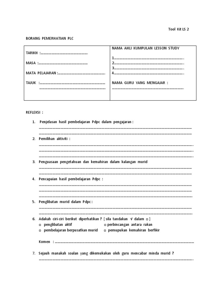 Freelancers can also search jobs for freelance work and get hired. The gurus may buy and sell securities before and after any particular article and report and information herein is published, with respect to the securities discussed in any article and report posted herein. Borang pemerhatian lesson study borang refleksi lesson study laporan refleksi lesson study penulisan jurnal pelaksanaan aktiviti galakan dan pertandingan. Contact guru plc education on messenger. Strategi tips borang pelaksanaan plc plc adalah merupakan singkatan kepada professional learning community atau bagi mana mana guru yang ingin tahu lebih mendalam mengenai plc sila klik link.